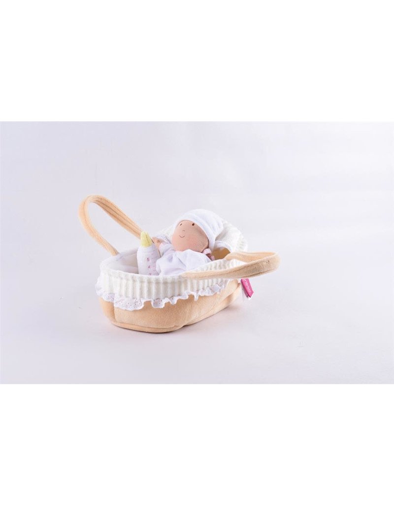 Bonikka draagwiegje met een mooie knuffelpop, zuigfles en dekentje. Ideale set waarmee je kleintje op een veilige manier zelf voor een poppetje kan zorgen!