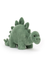Gorgeously grassy, with a huggable hump, it's friendly Fossilly Stegosaurus! This delightful dino has soft, foldy spines, chunkity paws and a long, loping tail. Groovy in green and fond of foliage, this squishy stego is ready to ramble!