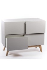 De Griffin Grey commode is een strak en muisgrijze ladekast die afgewerkt is met donker beuken onderstel. Door het optioneel verzorgingstablet kan je er een verzorgingstafel van maken.